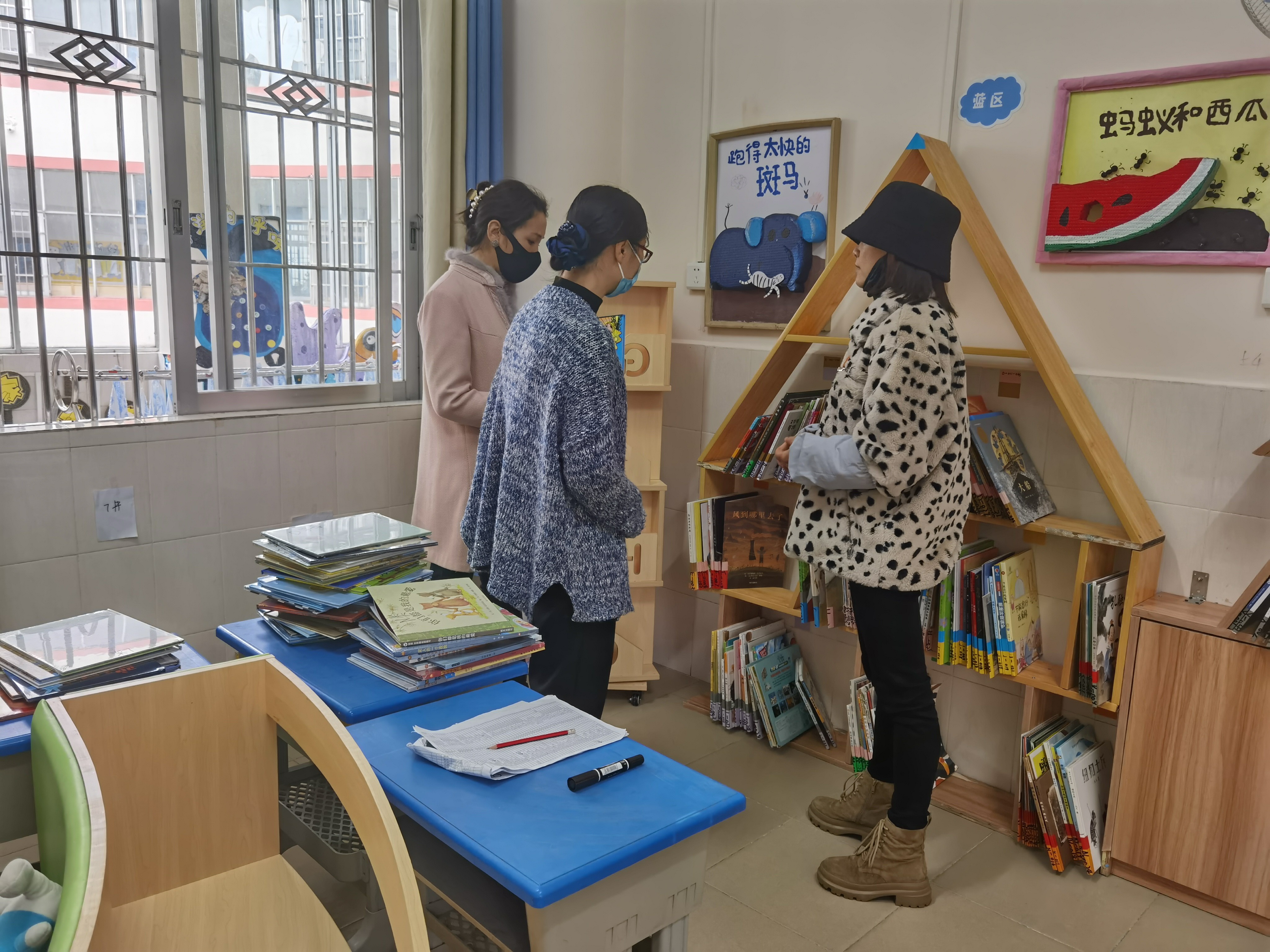 我馆工作人员到达幼儿园后,了解了绘本阅览室的管理、借阅、编目等情况。目前,海城区机关幼儿园绘本藏书达1000册,没有分类、编目,导致绘本管理和借阅非常不方便。针对管理工作中存在的困难和问题,对管理员进行了面对面培训,并就绘本登记编目、借阅管理等方面进行详细指导,绘本阅览室管理员很快理解并掌握了图书分类编目及排架流程。