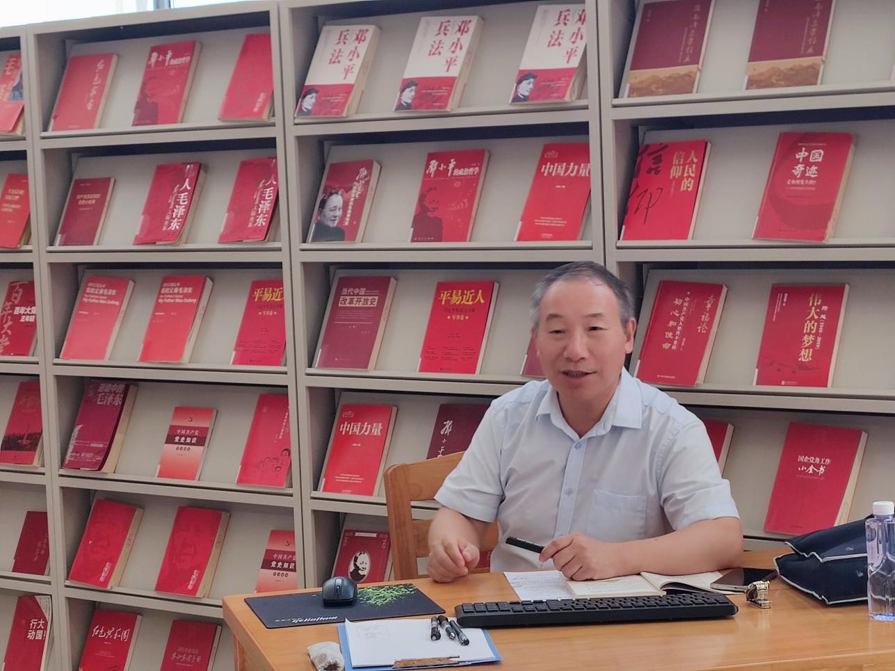 4月26日下午5:00,胡细木副教授在图书馆三楼“红色阅读角”举办红色知识专题讲座,本期讲座的主题是从入党誓词的发展演变中感悟信仰的力量。(张新玲摄)