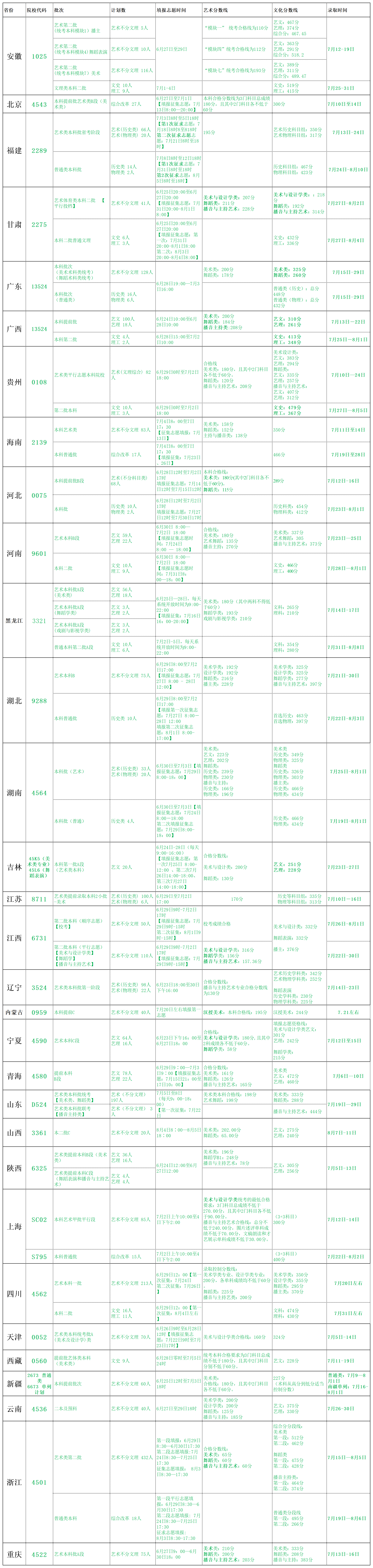 2021年分省录取信息一览表(含录取批次、分数线、录取时间等)