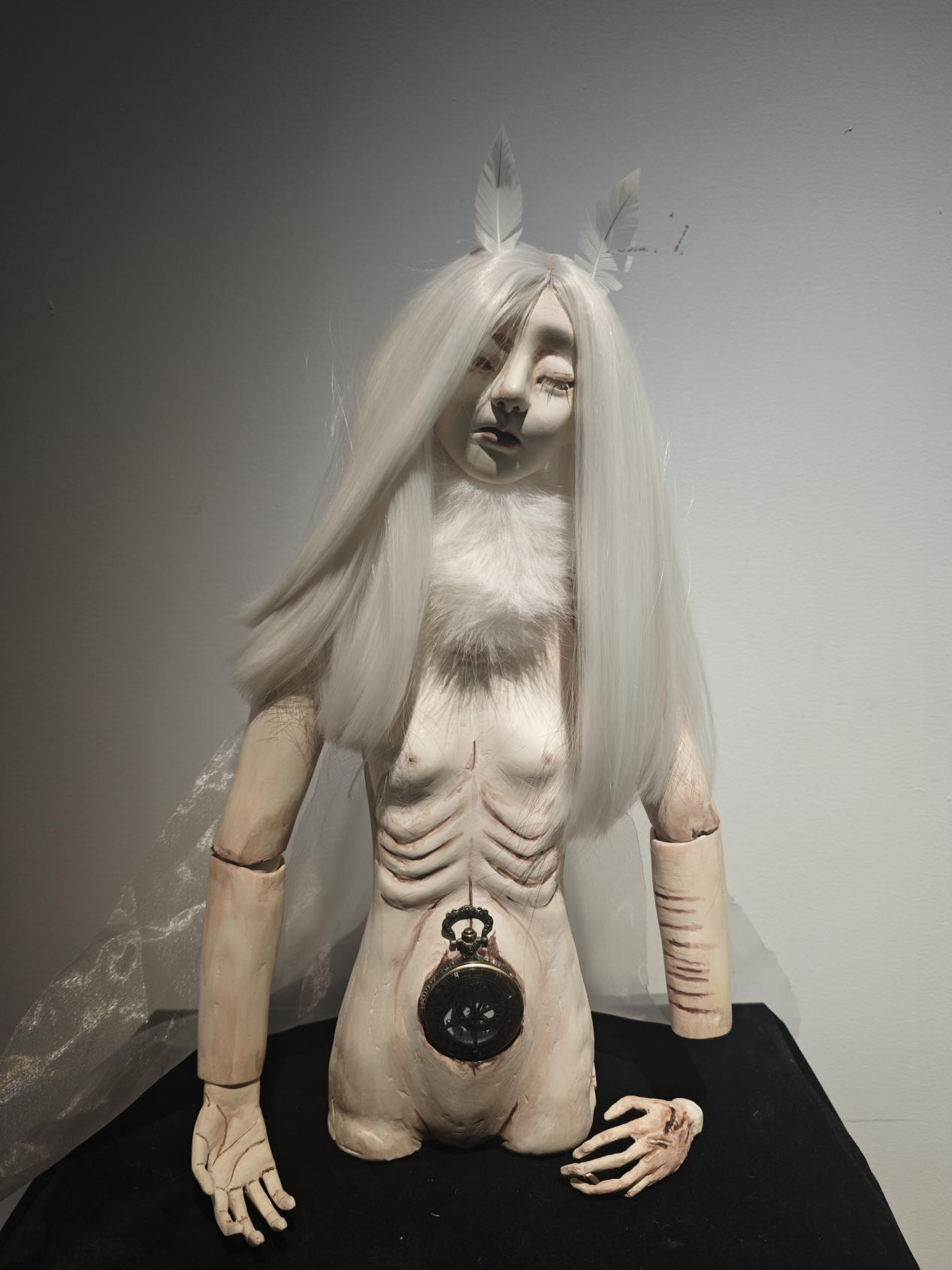 李慜静–《时蛾》尺寸:37*20*45 材质:石塑粘土 指导教师:许珍珍
