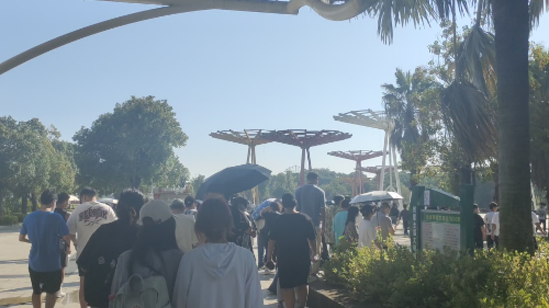 (学生有序进入园博园校区)