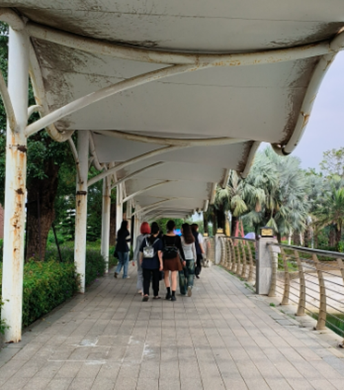 教师带领学生有序的乘坐大巴车抵达北海园博园校区的实践基地,进入园博园后,教师讲授,景区调研从了解项目地理位置开始,景区占地大小,项目类型概况等,引导学生进行项目定位、功能分区、交通设施、座椅、游戏设施安全舒适、卫生设施配置、无障碍等设计调研,对各项功能进行评价及优缺点分析。示范如何进行户外座椅优缺点分析,讲解场地空间分布及功能分区特点,公共环境设施分类,行为习性等相关比例尺度在环境设计中的应用。要求学生根据对景区的公共设施、休息设施、游览设施等进行人机工程学评估,以确定这些设施是否符合人体工程学原理,是否能够满足游客的需求。在调研过程中,进行拍照记录,对园博园的各个方面进行深入的分析和研究,以找出存在的问题和改进的方向,为景区的改进和提升提供科学依据。并做好相关记录。在实践的过程中,学生们充分发挥自己的优势和潜力,积极参与调研活动,通过实践来提升自己的能力和素质。