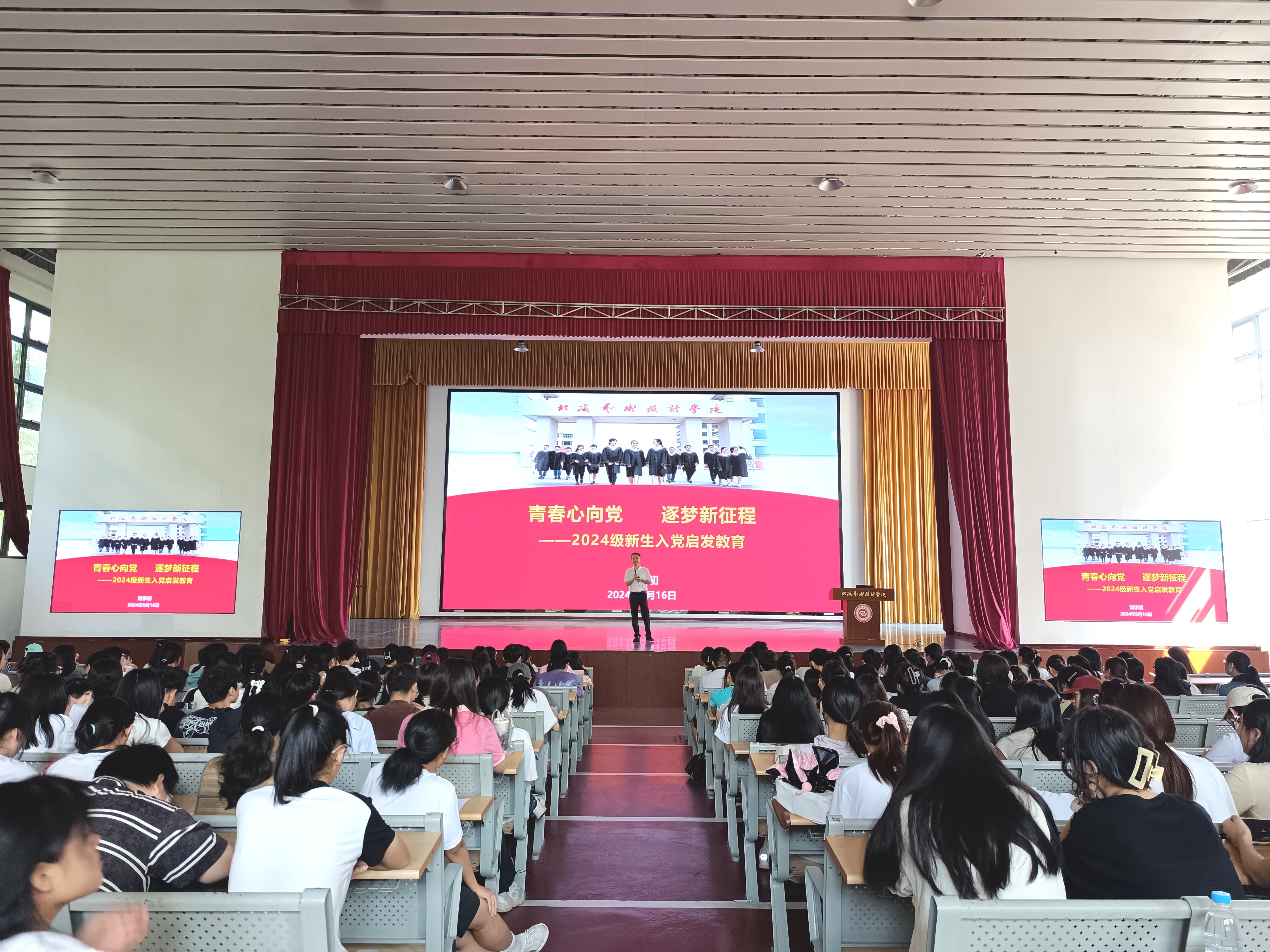 为促进新生对党的了解和认知,进一步激发学生爱国、爱党热情,引导学生树立正确的人生观和价值观,916日,我院学工办组织2024级全体新生在西校区大礼堂参加入党启发教育,认真聆听学校党委副书记刘承初主讲的《青春向党心,逐梦新征程》专题讲座。讲座由文学院党支部书记岳莹主持。