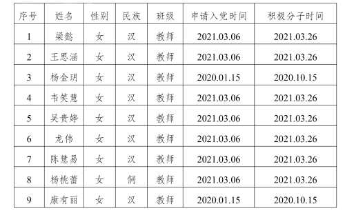 在征求党小组和党员、群众意见的基础上,经支部委员会审查,拟将梁懿等8位同志列为发展对象人选。根据发展党员工作有关要求,现将其有关情况公示如下,经党支部培养教育和考察,该同志已基本具备党员条件,在征求培养联系人、党员和群众意见的基础上,经中共北海艺术设计学院建筑与环境艺术学院教师第一支部委员会2022年10月11日讨论同意列为发展对象人选。