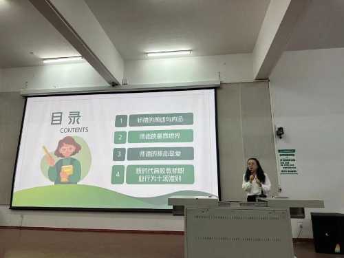 紧接着,学院教师支部书记刘琴带领全体教职工共同学习了“加强师德师风建设”的有关文件,从师德的阐述与内涵,师德的最高境界,师德的核心是爱,新时代教师职业行为十项准则等方面提出了加强自身建设的要求和做法,要求全体教职工高度重视师德师风建设,严格执行相关文件和规定,充分把师德师风建设和实际工作紧密联合起来,以学习促进工作,以工作带动学习,忠诚教育事业,廉洁从教,做有扎实学识、有道德情操、有理想信念、有仁爱之心的高素质老师。