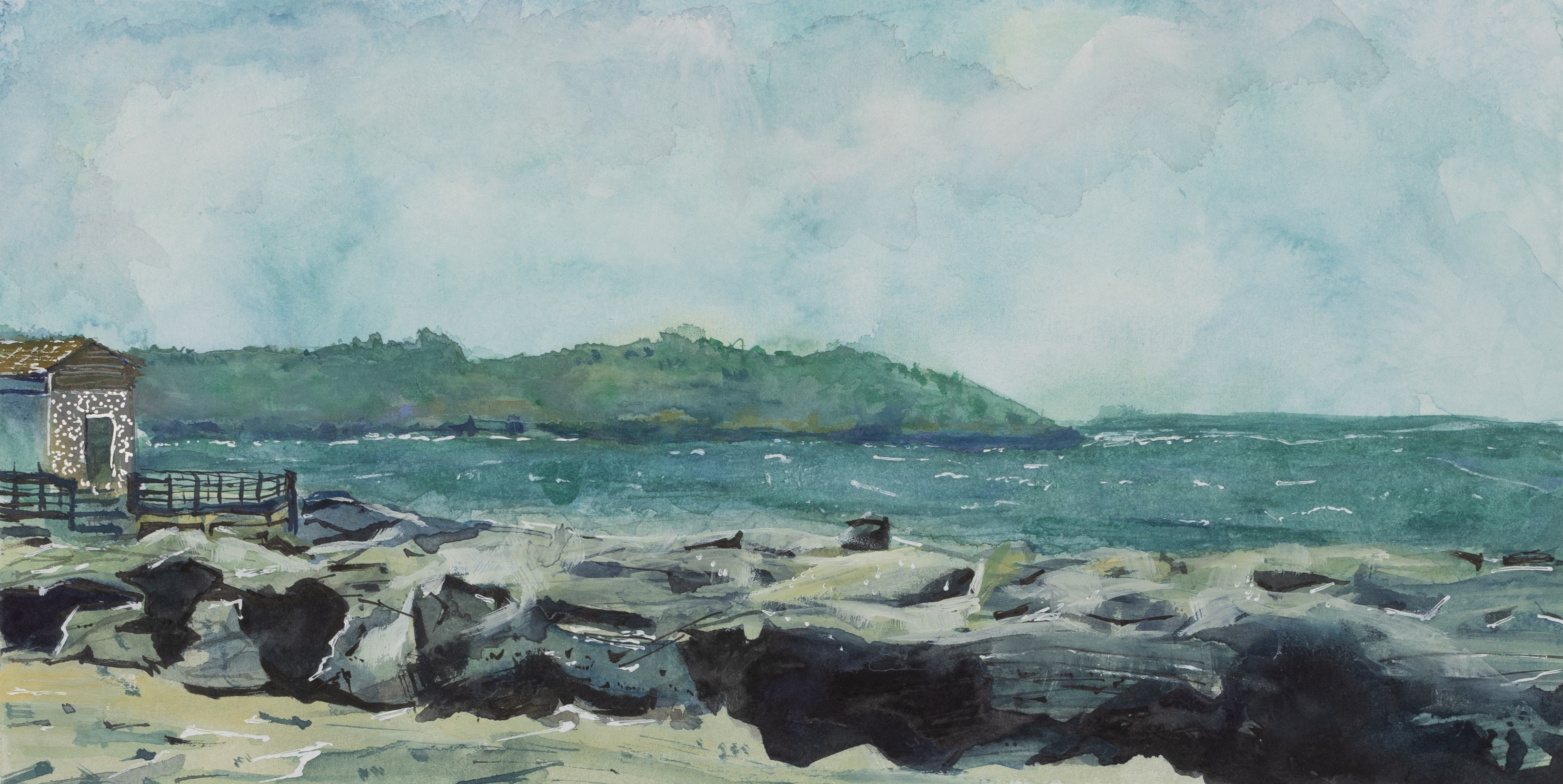 殷子涵,绘画专业,《湾》,4开,纸本水粉