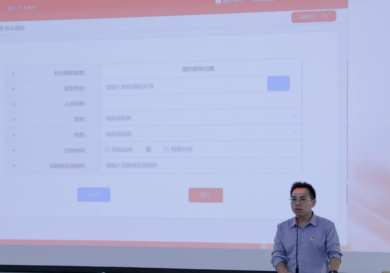 大会第二项,组织部与青志协就团业务培训的具体事项进行汇报。组织部部长林珍娴对各班青年大学习的学习情况进行后台查证汇总,阐述了学习青年大学习的重要性和相应的奖惩情况。组织部副部长邵万欢对“雷锋精神学习”这个活动时间、活动主题、课程内容等相关问题进行阐明。青志协部长杨永未对志愿服务系统操作进行了详细的讲解,让大家清晰地了解了志愿者服务系统的操作步骤。组织部副部长田子谦讲述了智慧团建的相关内容,让全体团支书更加清晰地了解自己工作任务。