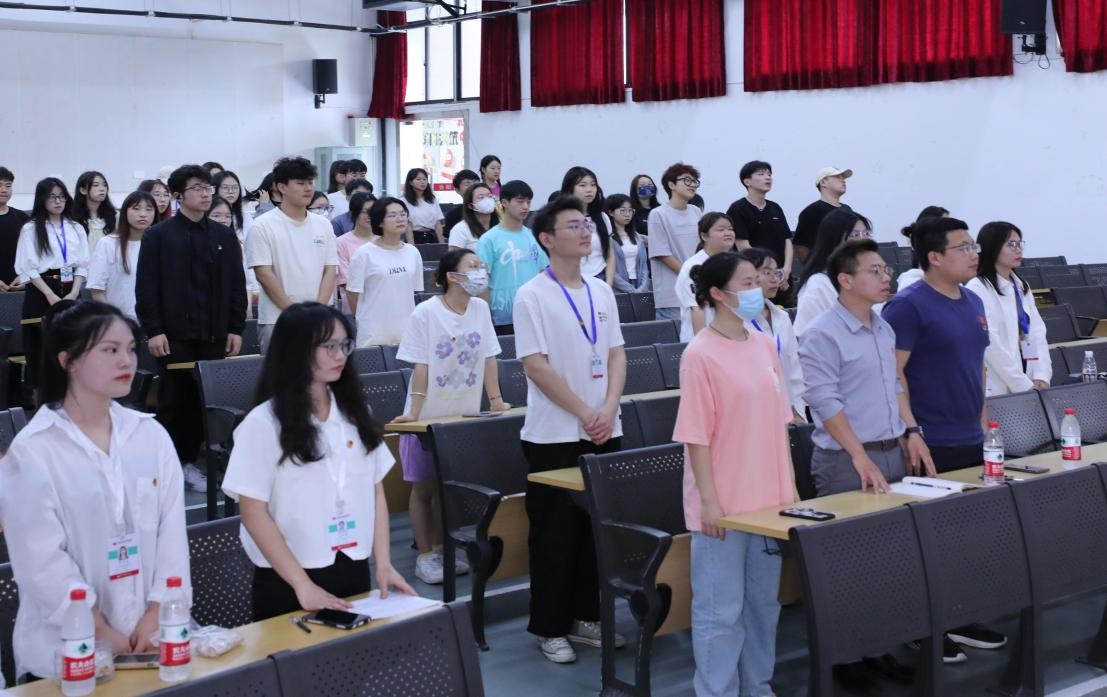 大会第一项,建筑与环境艺术学院组织部干部对参加本次会议的嘉宾进行介绍,并带领参与本次会议的全体成员起立奏唱共青团团歌。