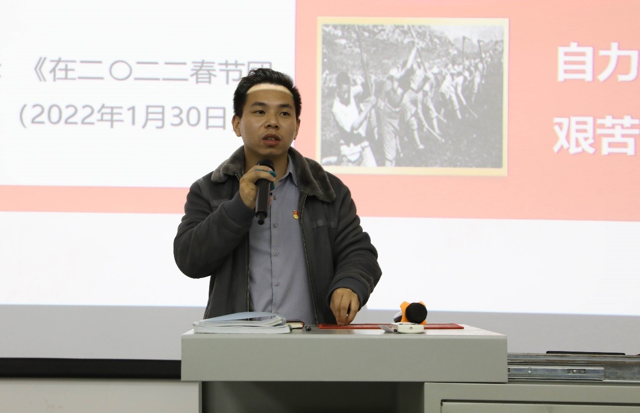 大会第五项,建筑与环境艺术学院分团委书记雷勇发言。首先他详细讲述了干训部的具体工作内容,其目的在于提升干部的各项能力,改变工作思想,提高工作质量。随后,雷勇老师对工作中的不足之处进行了总结,并表示将要进行内部整改,不仅是为了提高分团委的工作能力,也是为了应对接下来的评估工作。最后,雷勇老师强调了团队协调的作用,希望分团委的全体能够紧密团结,为学院的发展贡献自己的力量。