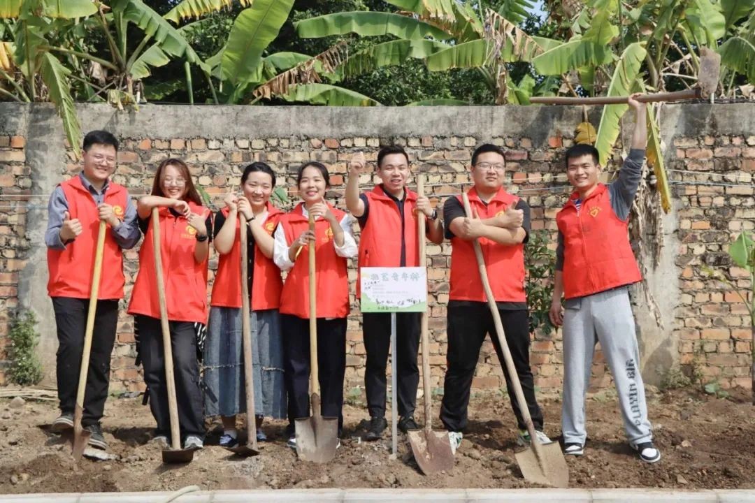 整个现场呈现出一片热火朝天的景象,大家种下了几十棵小树苗。