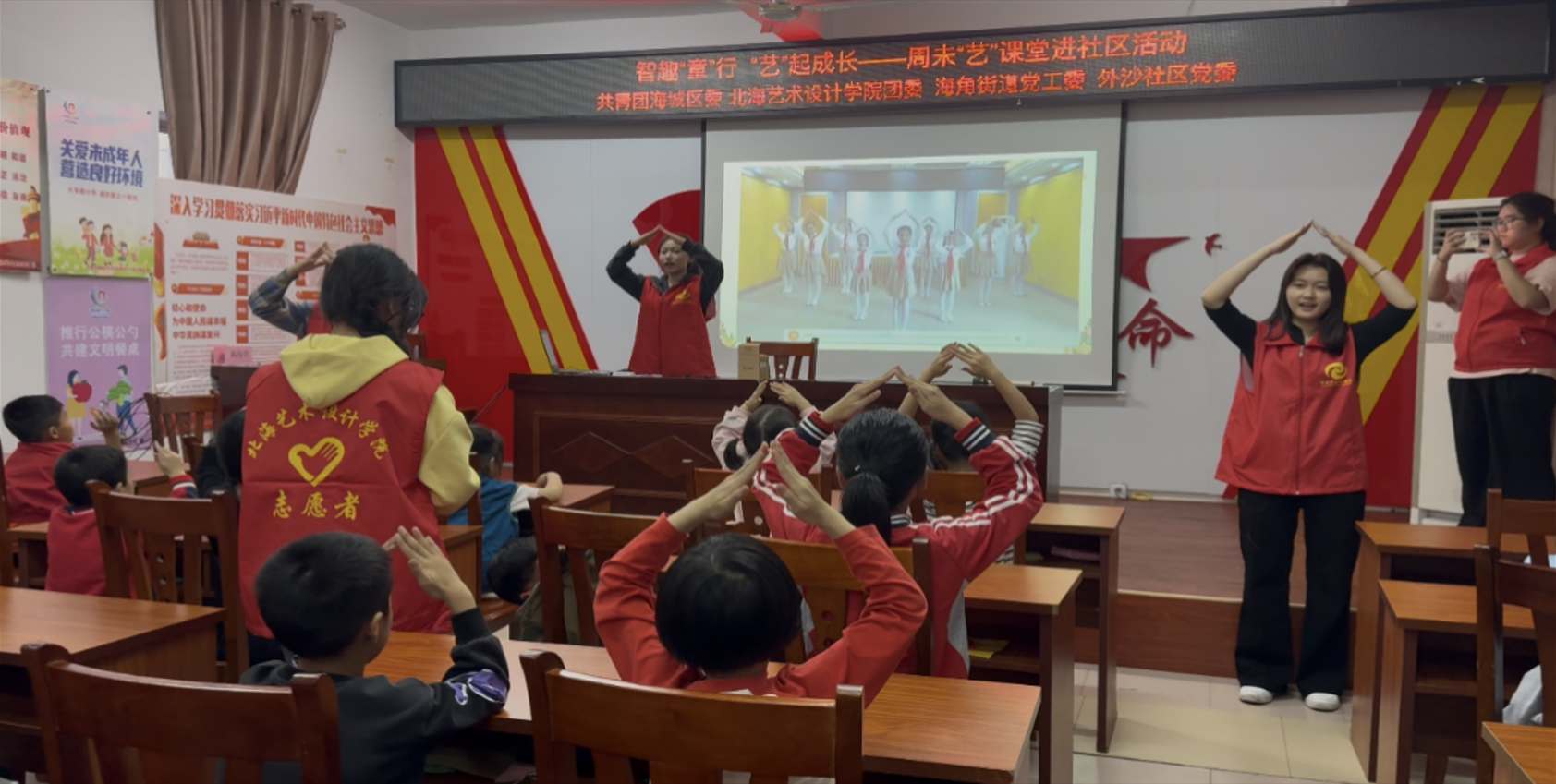为贯彻落实习近平总书记关于深入开展学雷锋活动重要指示精神,进一步弘扬“奉献、友爱、互助、进步”的志愿者精神,传递温暖力量,营造校社互助友爱氛围,3月15日,我校“周末‘艺’课堂”社区支教活动启动仪式在外沙社区举行。出席本次活动的领导有海角街道党群工作部部长罗莹、外沙社区党委书记吴平英、我校团委副书记杨美琪,共有师生代表、支教志愿者、社区儿童及家长等50余人参与。