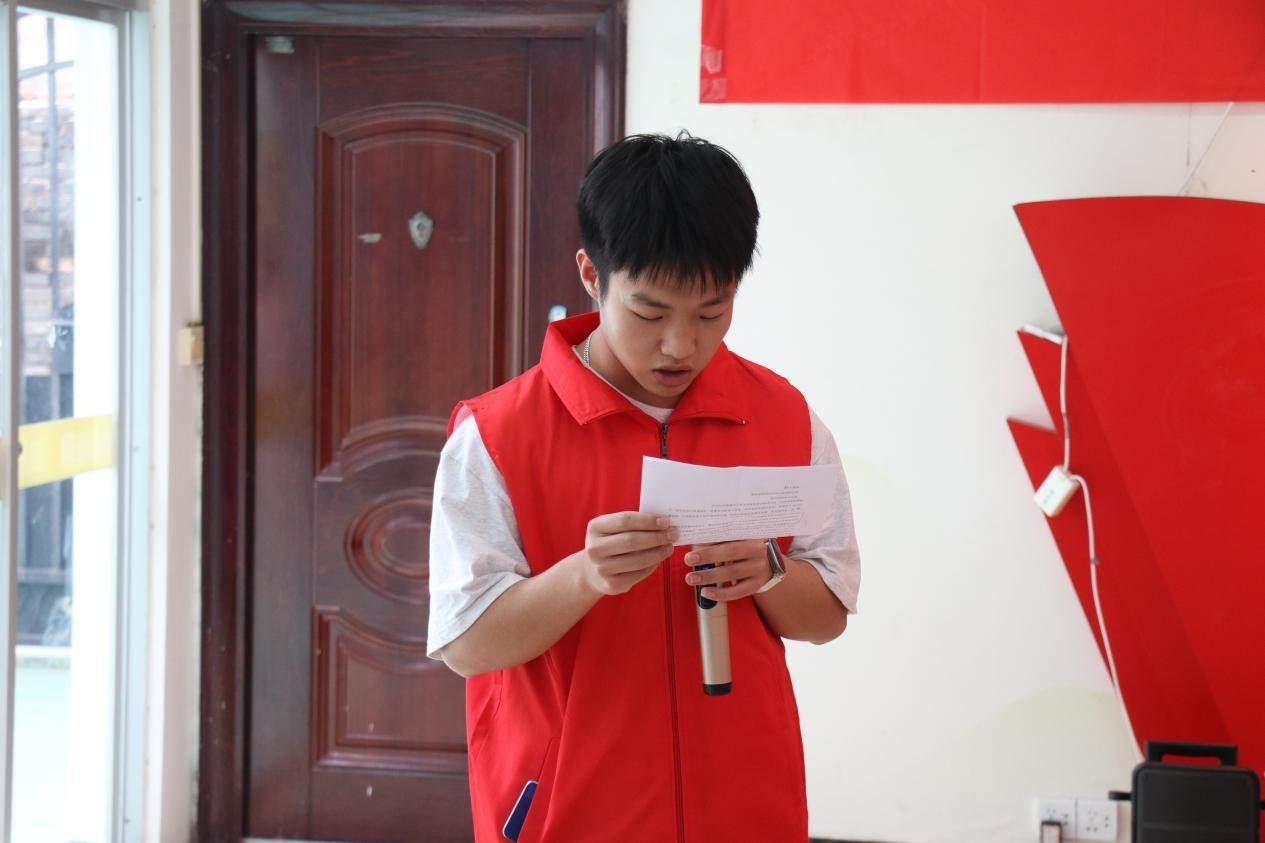 我校青年志愿者协会会长朱聪代表志愿者发言,他表示将继续践行志愿服务精神,用行动诠释爱心与责任,积极参与社区志愿服务活动,切实以自身的言行举止帮助人、感染人、影响人,不断传递正能量。