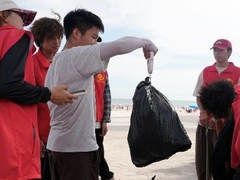 经过一个小时的奋战,沙滩再次焕发出勃勃生机。各小组带着“战果”汇聚,对垃圾进行统一称重。这些“战利品”不仅见证了志愿者们的辛勤付出,更点燃了志愿者持续保护生态环境的信念与决心。志愿者们以身作则,呼吁每个人做地球的守护者,做环保理念的践行者,让环保意识在全社会蔚然成风。