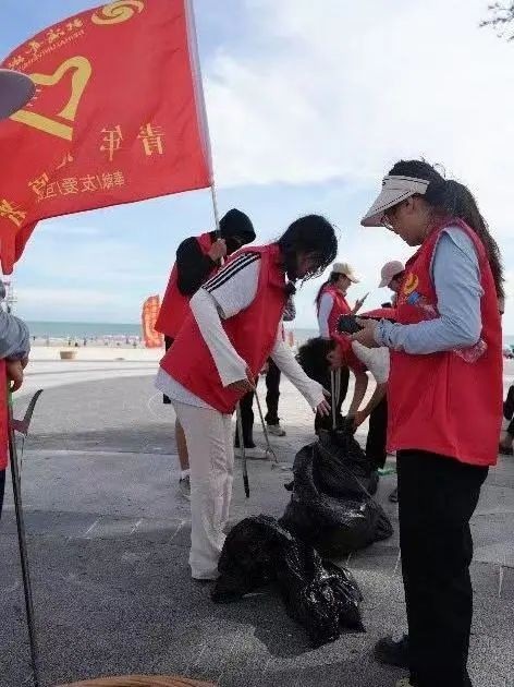 我校团委开展“守护蔚蓝海岸,共筑美丽沙滩”清洁志愿服务活动