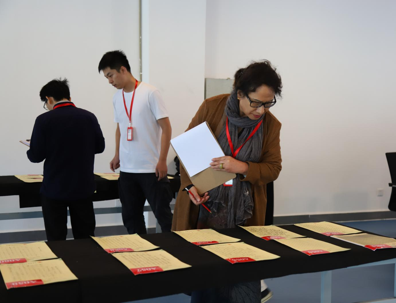 在终评会现场,创新创业学院院长云曼首先向与会嘉宾和评审团专家介绍了本次大赛的概况;随后,专家团组长苏乃从老师宣读了大赛终评的评审规则;紧接着,评审团本着公平、公正、公开的原则,严格按照评审要求,对入围决赛的93件硬笔书法作品和78件毛笔书法作品进行认真严肃地评选。