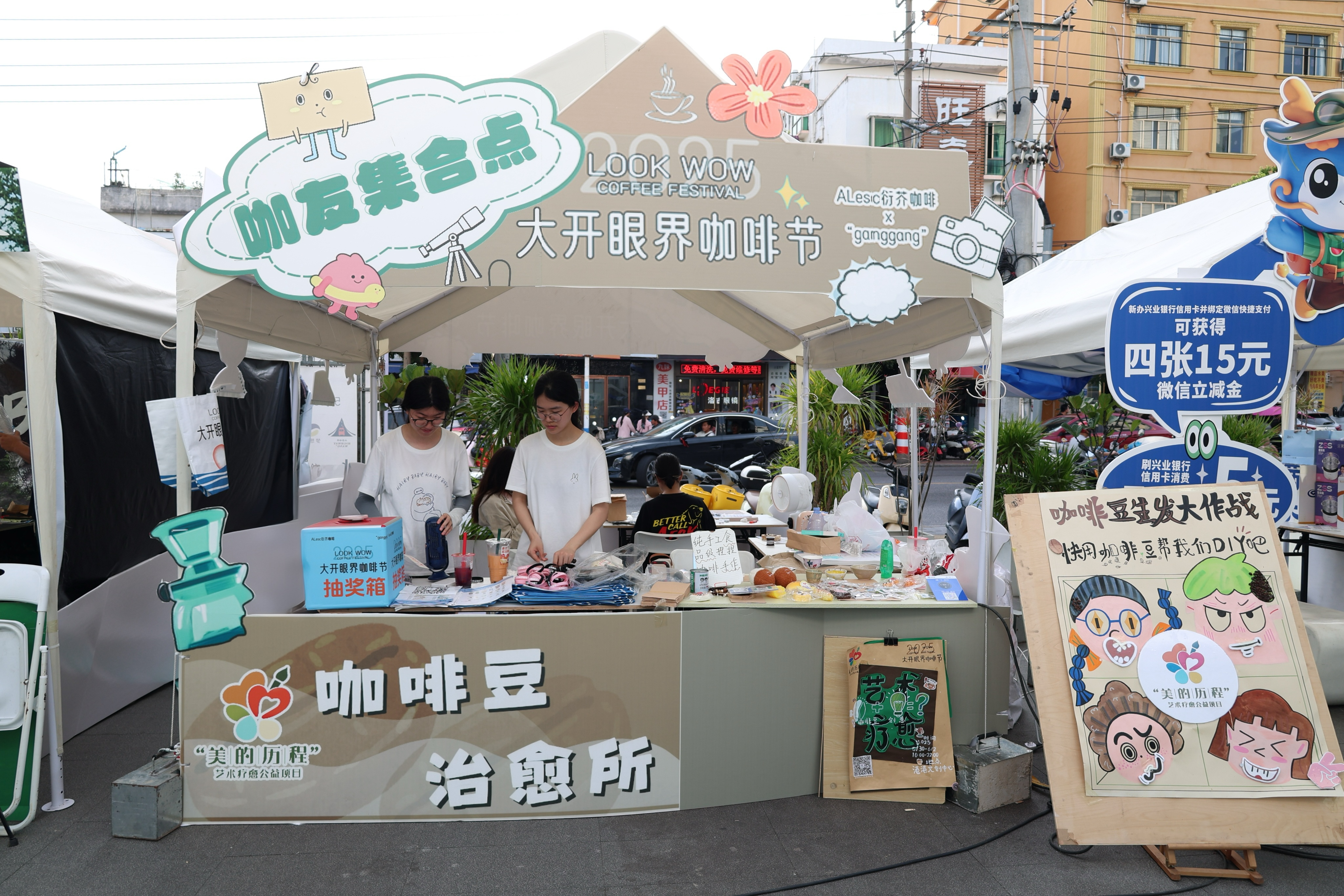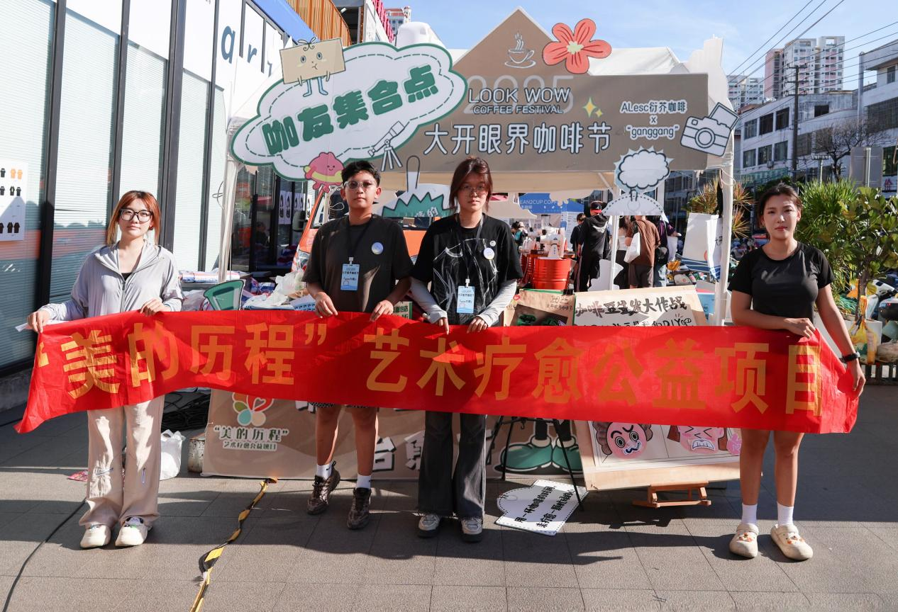 我校学子“艺术疗愈”公益项目在北海首届咖啡节开展公益活动 供图/林蕊