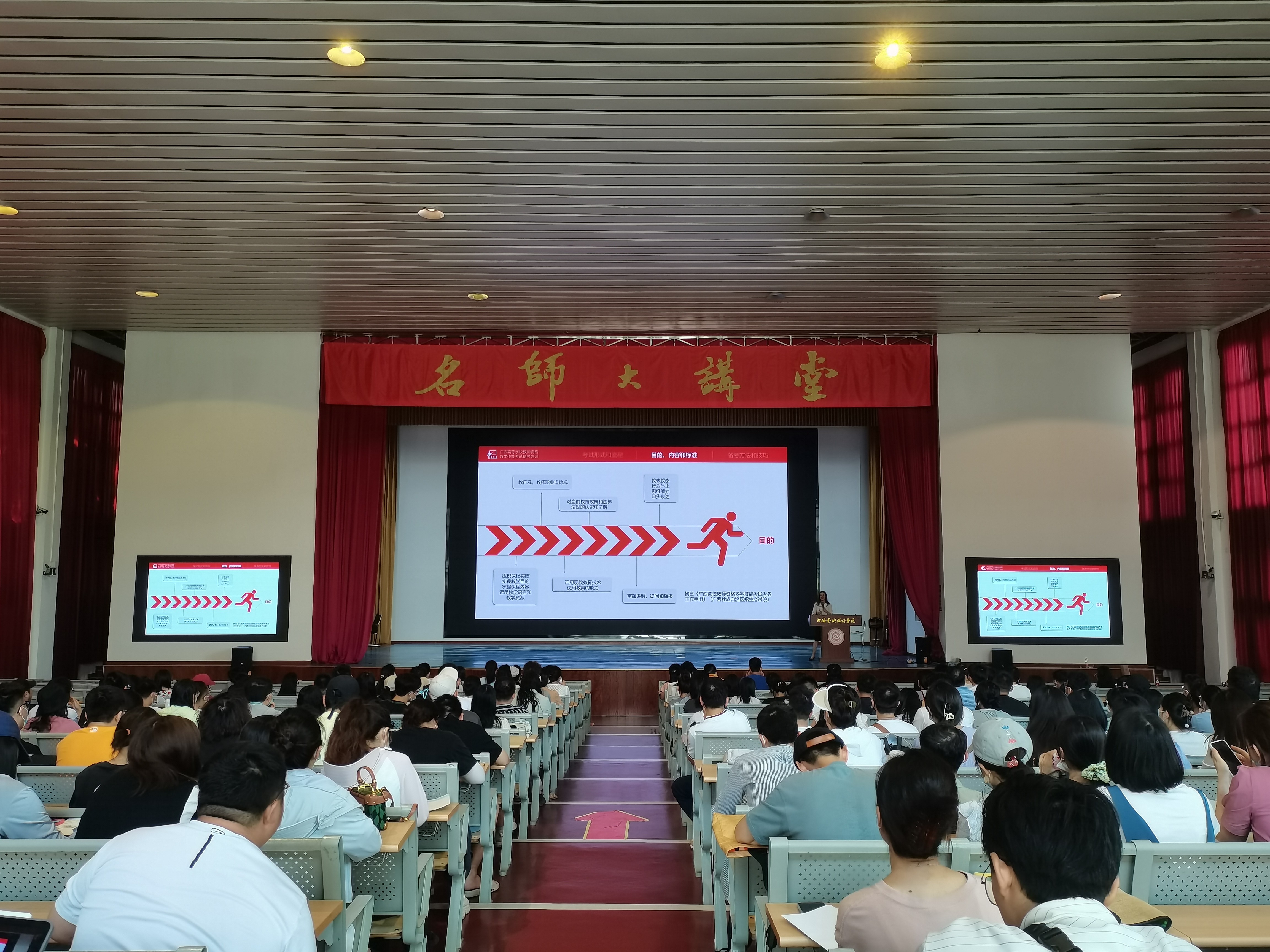 增强我校教师高校教师资格证技能考试应试技巧,提高高校教师资格证技能考试通过率,5月19日下午,人事处(教师发展中心)邀请广西高等学校教师资格教学技能考试测试专家、FDW国际认证教学技能引导员左婧在学校礼堂为我校今年参加高校教师资格证技能考试的教师开展了专题培训。培训由人事处处长屈志鑫主持,共有200余位教师参加