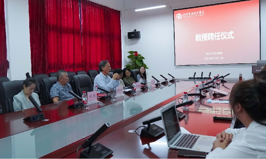 刘青林教授、刁梅教授作为受聘教授分别发言,刘青林教授对有机会参加北艺教学团队表示感谢,去年六月份刘教授就已接触到了部分北艺学生、老师,感受到了北艺老师学生们的敬业、认真的教学和学习态度。刘教授希望能在自己的任期内对学科建设、教学工作投入最大的热情,在北海艺术设计学院这所专业类院校发光发热。刁梅教授作为一位拥有丰富企业工作经验的教授,将会在未来的教学工作中探索课程与实践之路,为北艺培养社会适用的人才。