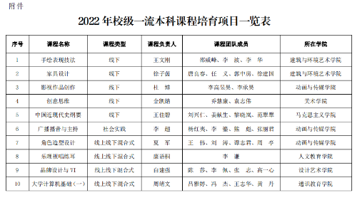 附件:2022 年校级一流本科课程培育项目一览表