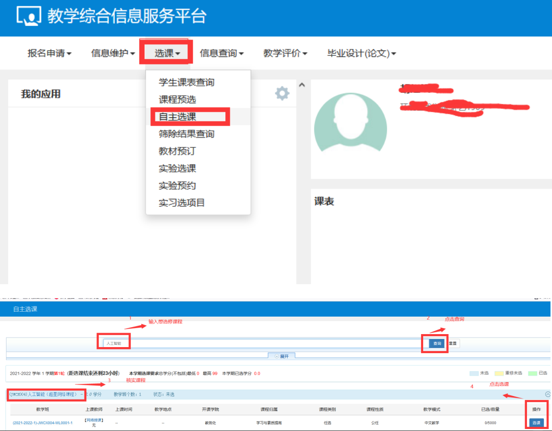 四、选课方法及注意事项