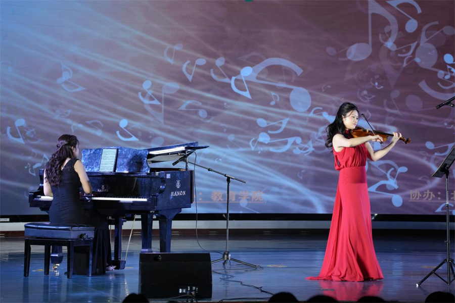 音乐会下半场,劳黎携手我校优秀青年教师、北海市音乐家协会副主席张靖茜,共同奏响了克拉拉・舒曼的三首浪漫曲。细腻情感与浪漫诗意经演奏家之手化作一个个灵动音符,让现场听众仿若置身十九世纪的欧洲沙龙,沉醉于浪漫主义音乐的深情世界。