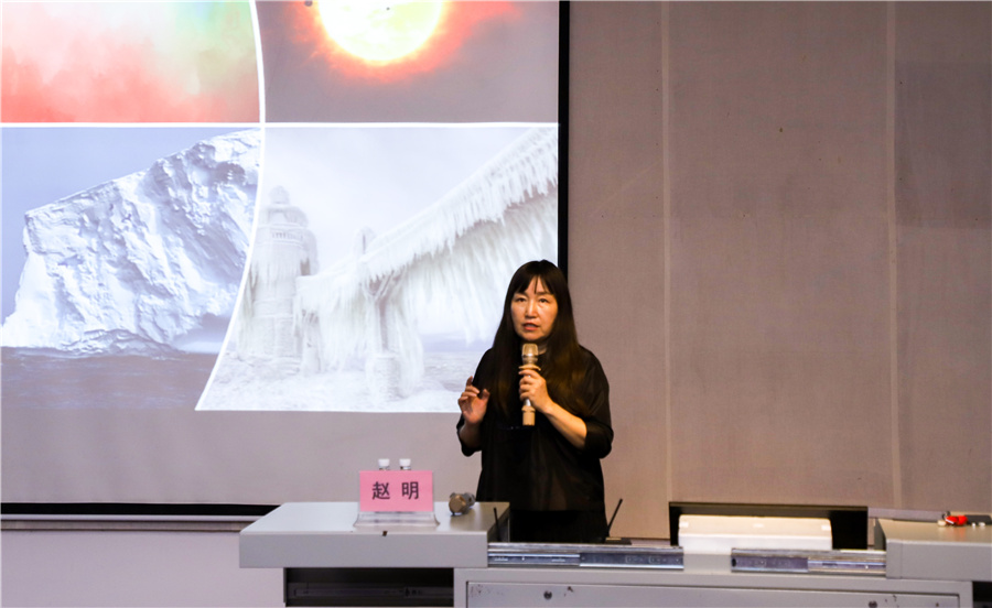 讲座最后,赵明教授解释了因缘际会,即不仅仅是很多的因素彼此契合,要彼此成就,不能人云亦云,要不断探索、观察、判断。而服装设计专业需要更多的可能性,高瞻远瞩,展开我们的想象力。