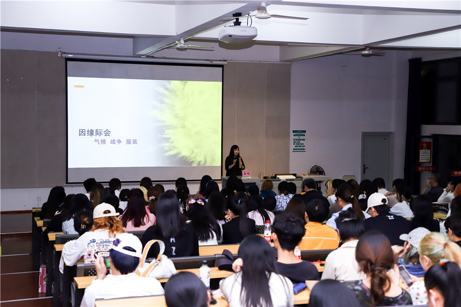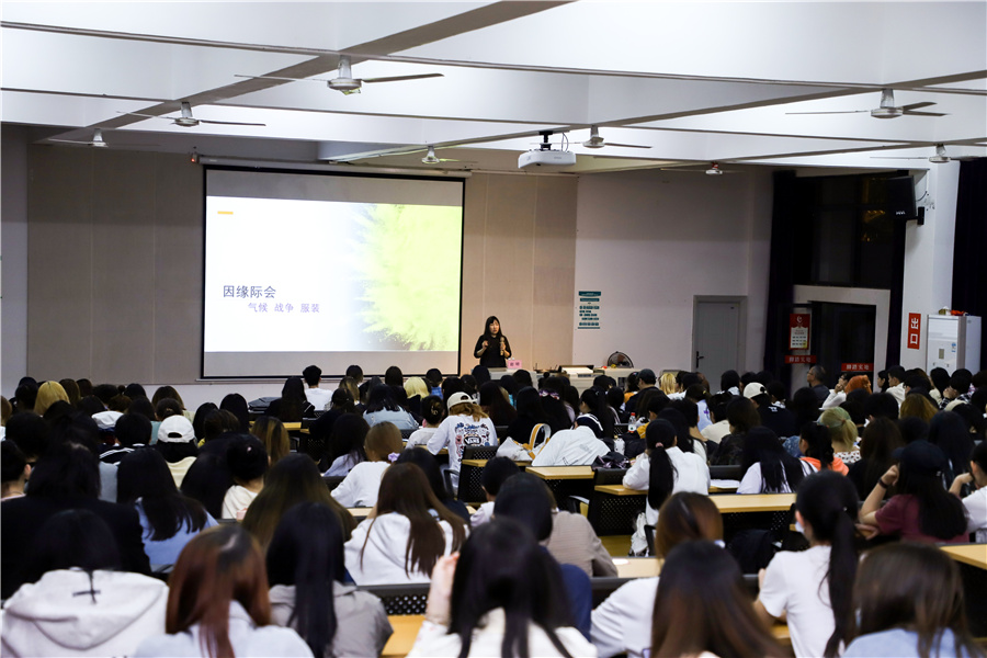 2021年4月29日晚,于我校西校区伦理楼107,北京服装学院赵明教授为我校带来了一场题为《因缘际会——气候、战争与服装》的讲座,现场座无虚席。本次讲座由副校长王斌主持。