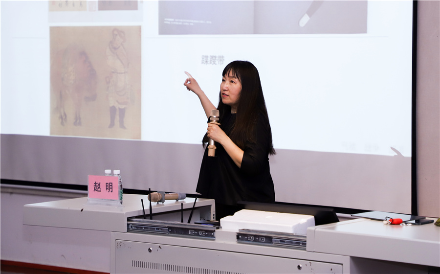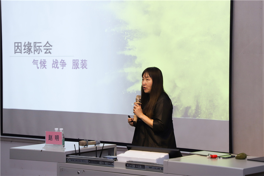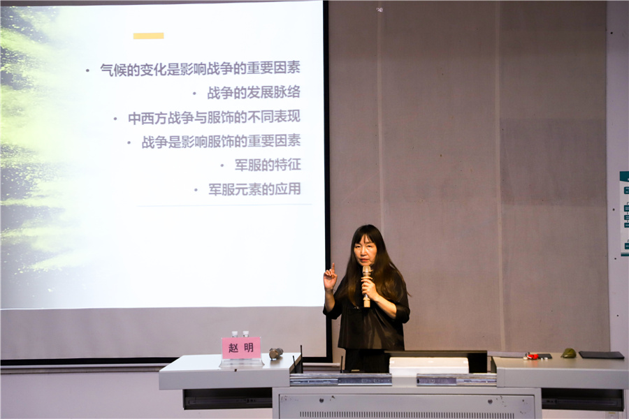 赵明教授谈到,服装是文化载体,中西方的不同文化决定了战争的特征,表达出不同的服饰特征。同学们要在服饰文化中勇于探索,勇于发现。