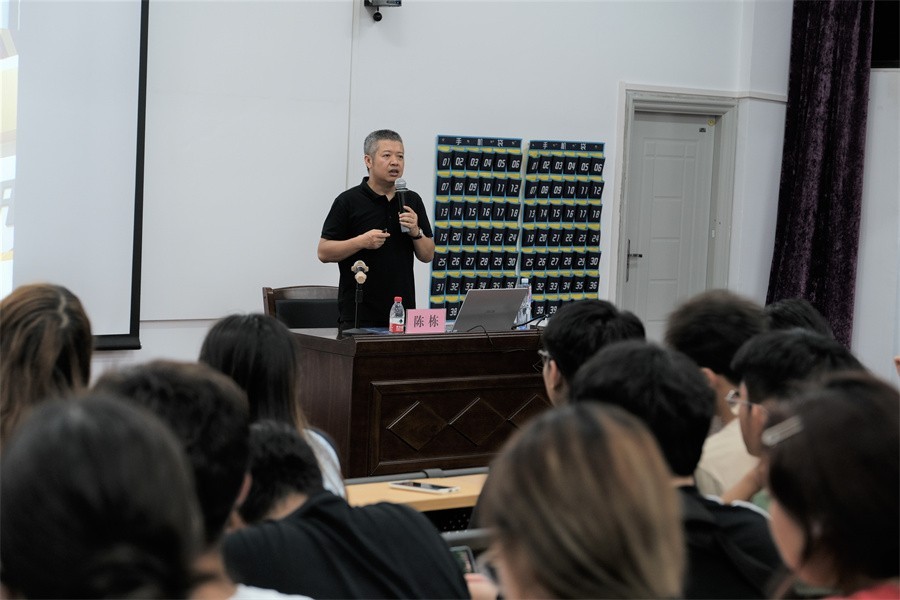 陈栋教授还通过其自身的各种工作经验,向现场师生传授了在实际工作岗位上应对设计任务的有效做法。他表示,面对甲方顾客或公司的时候要学会投其所好,尽量满足要求,他强调在创作设计时,要做到降材升质,才能实现市场价值。当面对甲方顾客不同的喜好时,如何选择和取舍设计,需要在工作时认真考量,而更为重要的是要在平时注重积累素材,才能在创作时应对自如。为此,他表示读书、游历、分享这三者是成为优秀设计师的重要条件,而设计最让人着迷的在于:解析常态、探寻未知;拓展自己知识的边界,远离已知的舒适区。他鼓励同学们要做到在创业时体味感悟,于工作之外修炼内功。