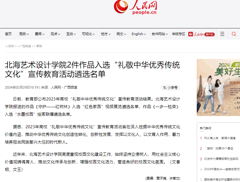 人民网:北海艺术设计学院2件作品入选“礼敬中华优秀传统文化”宣传教育活动遴选名单