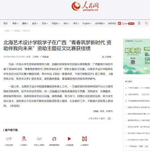 人民网:北海艺术设计学院学子在广西“青春筑梦新时代 资助伴我向未来”资助主题征文比赛获佳绩