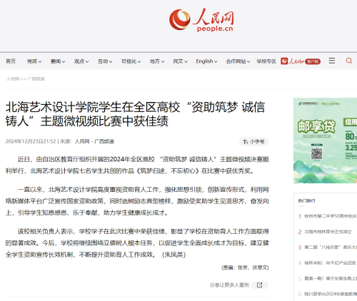 人民网:北海艺术设计学院学生在全区高校“资助筑梦 诚信铸人”主题微视频比赛中获佳绩