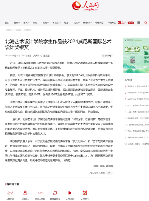 人民网:北海艺术设计学院学生作品获2024威尼斯国际艺术设计奖银奖