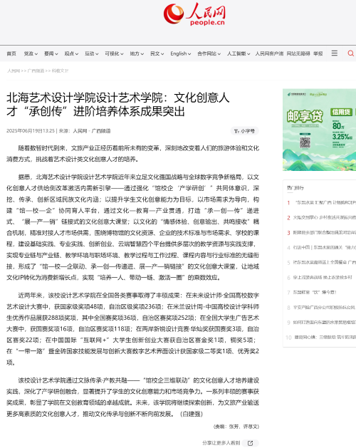人民网:北海艺术设计学院设计艺术学院文化创意人才“承创传”进阶培养体系成果突出