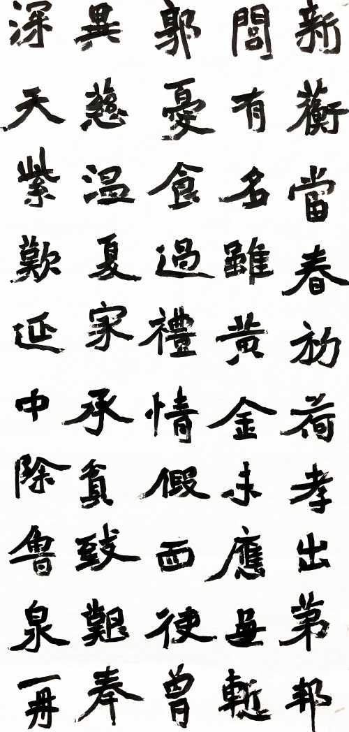 参展的经历极大地激发了邓钧禧的书法创作热情。他始终秉持“诸体为用”的艺术理念,深入学习篆隶楷行草等书体之长,形成独具特色的艺术表达。在创作过程中,他坚持精益求精,反复推敲打磨每一幅作品,不断探寻书法艺术的生命力。面对学业与创作的双重挑战,邓钧禧以学业为重,同时注重从生活中汲取灵感,将日常感悟融入笔墨,实现学业与艺术创作的有机结合。