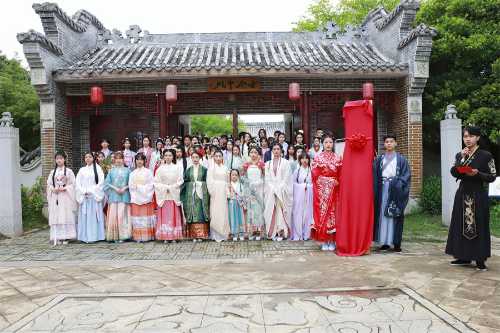 揭牌仪式结束后,现场还开展了各色相关活动,百人汉服走秀《东方神韵、盛世霓裳》尽显汉服饰文化之美;舞蹈表演《豆蔻年华》婀娜多姿,风采翩翩;翰墨芳华写天地,书画即兴创作彰显中华民族传统优秀文化风骨神韵;伴着余音袅袅的古筝演奏,冰清典雅的茶艺表演令人赏心悦目,现场还以茶会友,众人于茶宴品茶,深刻体悟特色汉文化的无限魅力。
