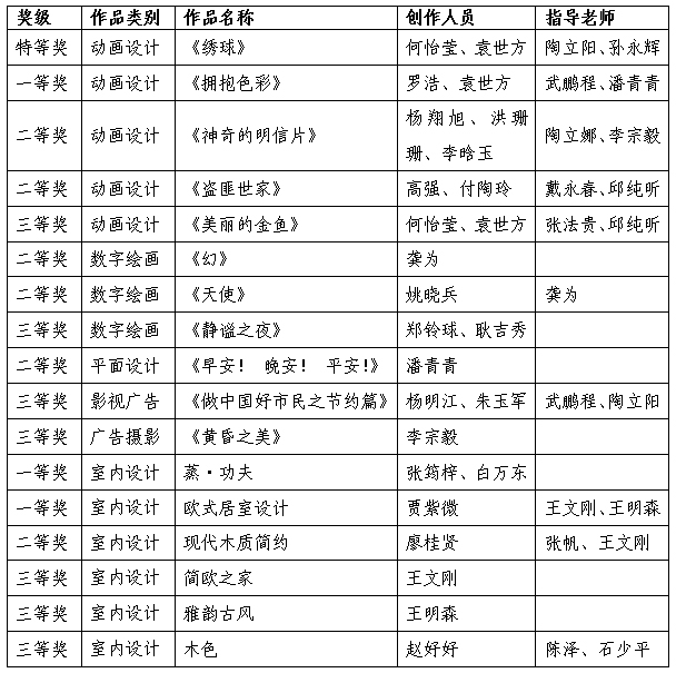 热烈祝贺我院师生参加“第二届全国高校数字艺术作品大赛”成绩可喜
