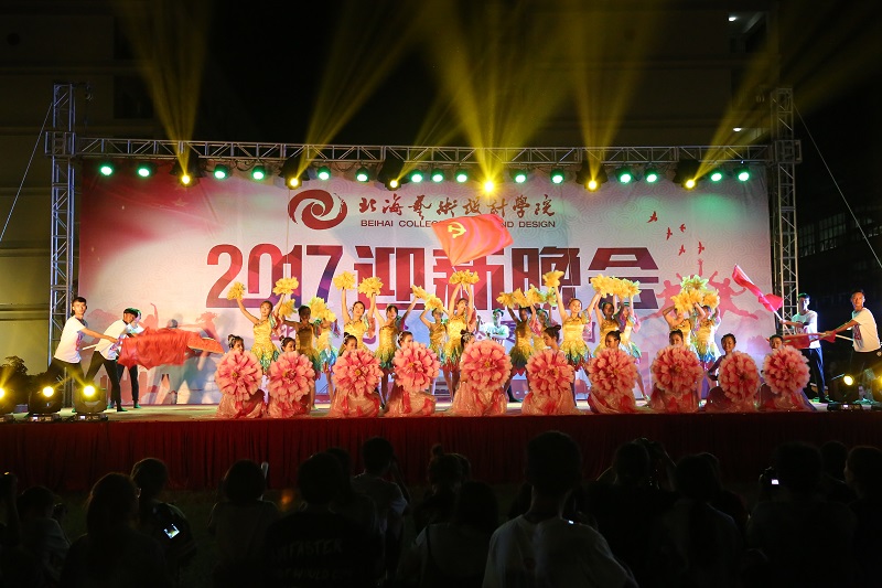 晚会紧扣“迎十九大· 感恩祖国”为主题,学习和贯彻党的思想方针。以歌舞《鲜花心向党》拉开帷幕,率先点燃了全场观众的激情。现场光芒闪耀,节目精彩纷呈,台上动感的舞姿、热情的跃动、欢快的节奏、台下飞舞的荧光棒、热烈的掌声,一瞬间欢乐的氛围弥漫了整个校园。经过精心筛选出的15个精彩节目充分展示了北艺学生的风采和活力。在节目中穿插的2017年迎新宣传片、军训宣传片环节,更加突显了我院的人文情怀。