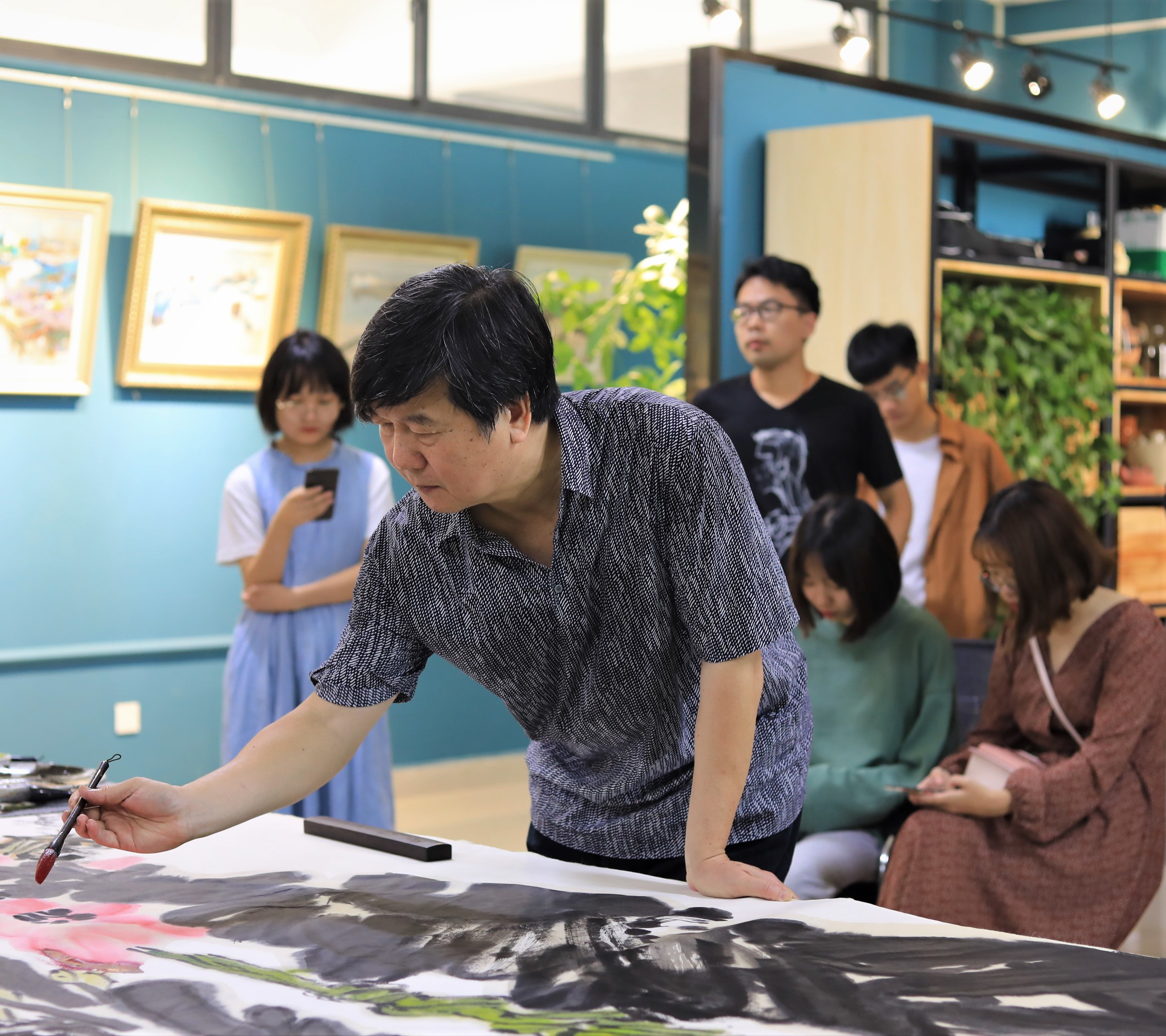 随后,蔡教授开始进行范画创作,并对创作过程进行了深入浅出的讲解。