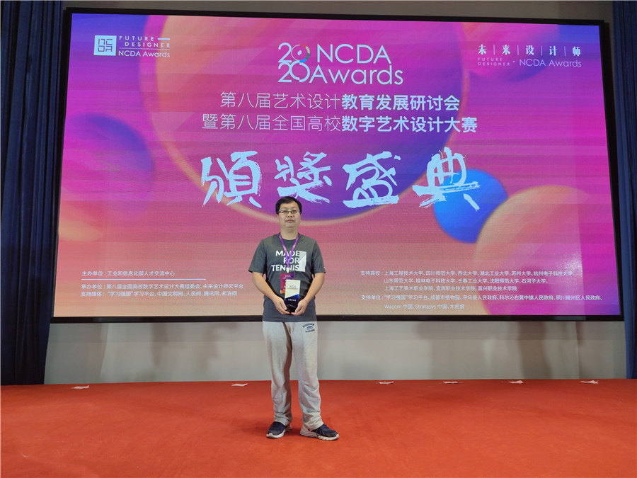 2020年11月14日,“第八届艺术设计教育研讨会暨第八届全国高校数字艺术设计大赛(NCDA)颁奖典礼”在历史文化名城嘉兴市隆重举行。在此次大赛中,我校表现突出,共获得一等奖四项、二等奖八项、三等奖八项、优秀奖两项,另外,我校赛事组织工作优秀,荣获卓越贡献奖。美术学院副院长唐海老师代表我校参加了颁奖典礼。