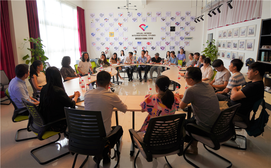 座谈会上,唐教授与在座各位老师进行了深入交谈。各专业教研团队的老师向他积极请教提问。其中唐教授就设计学院副院长诸小丽所提出的“如何更好的管理设计工作室”问题进行举例解答,他指出要加强工作室的规章管理制度的建设,进一步规范工作室工作。例如清华美术学院首饰工作室,分工明确,作风鲜明,遵守相关管理制度,充分利用好工作室资源。
