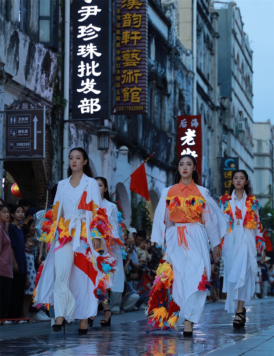 学校在建党100周年之际,把服装秀场搬到北海百年老街