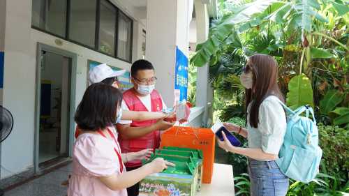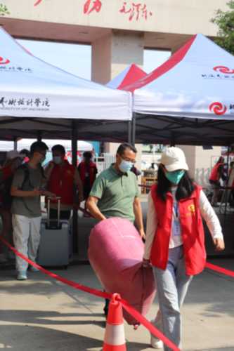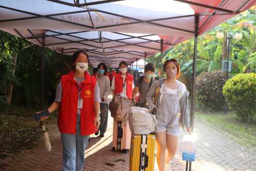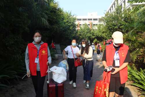 为确保新生入学工作的顺利开展,学校在北海火车站、北海福成机场均安排了迎新车辆。新生到达学校后,有序排队测量体温、查验录取通知书、广西健康码、通信大数据行程卡,以及对其行李进行消杀,方可入校。