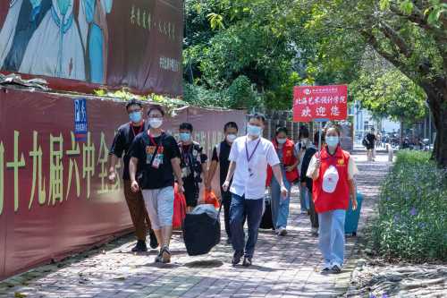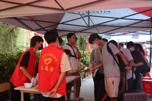 烈日炎炎,骄阳似火。迎新现场虽人潮涌动,但秩序井然。新生们陆陆续续进入校园,迎新工作如火如荼地进行着,到处都是忙碌的身影。志愿者们也穿梭于迎新现场,时刻准备为新生们服务,主动帮他们提拿行李、指引路线。他们用热情的微笑、仔细的讲解,帮助新生们缓解了初来乍到的陌生感,逐渐熟悉新的校园环境,更好地融入大学生活。