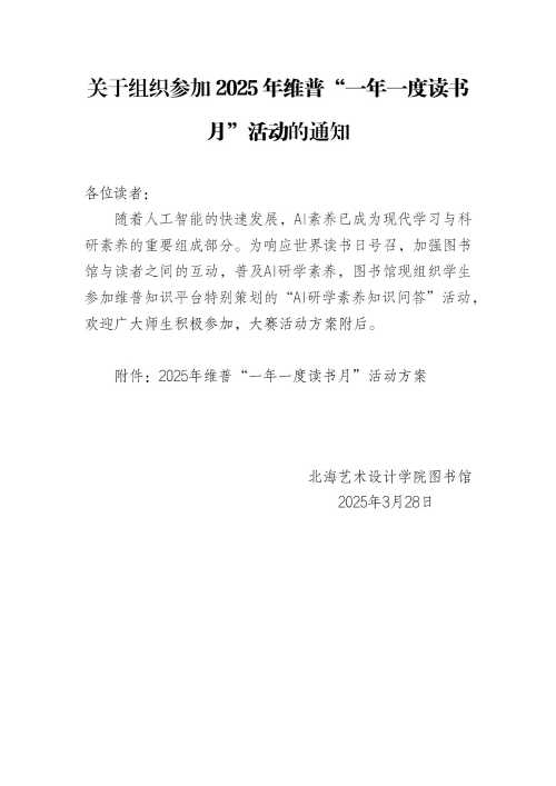 关于组织参加2025年维普“一年一度读书月”活动的通知