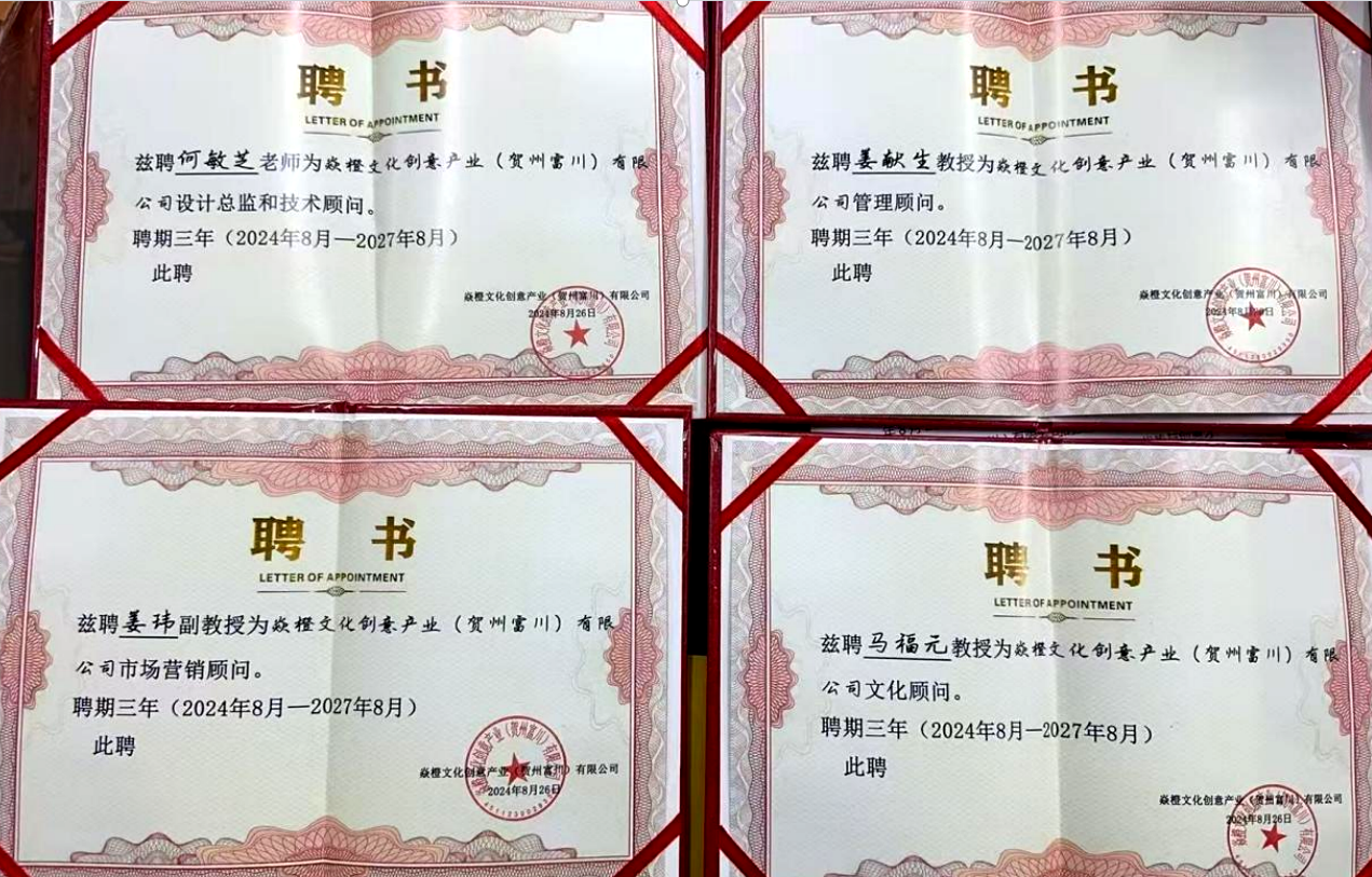 北海艺术设计学院马克思主义学院联合富川瑶族自治县焱橙文创,于 2024 年 8 月启动为期三年的 "思政 + 双创 + 文创" 合作项目。学院姜献生院长、民族学专家马福元教授、何敏芝讲师等组成考察团队,深入调研富川文化遗产与特色产业,构建 "实践基地共建 - 思创课程开发 - 校企活动联动" 的服务架构。通过校企资源整合,将企业设为思政实践教育基地,开发融入瑶族文化的双创课程,开展文创设计大赛等活动,形成 "理论教学 - 实践转化 - 产业应用" 的闭环服务模式。