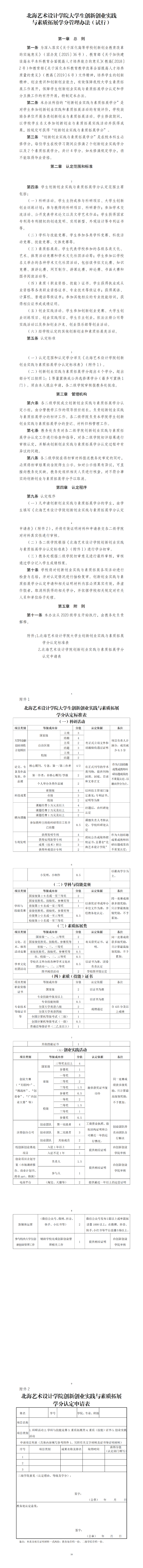 北海艺术设计学院大学生创新创业实践 与素质拓展学分管理办法(试行)