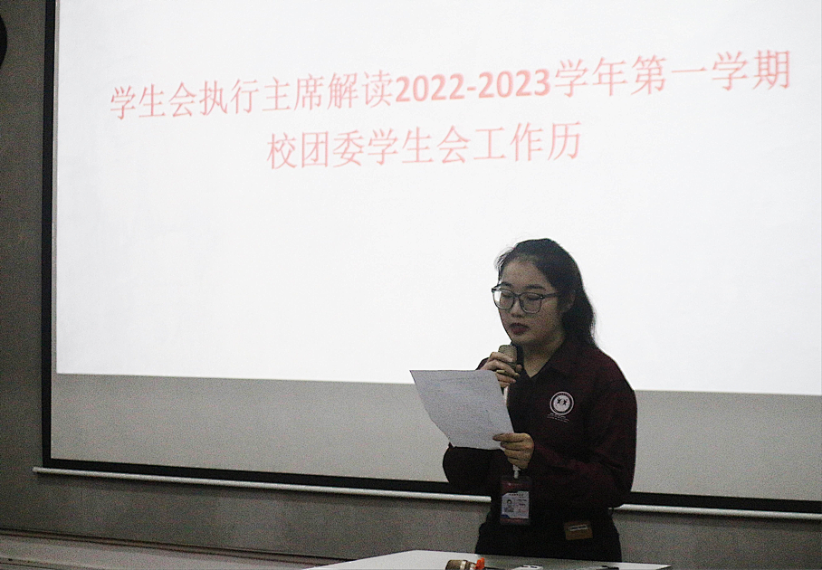 大会第二项议程:校学生会执行主席解读2022-2023学年第一学期校团委学生会工作历。
