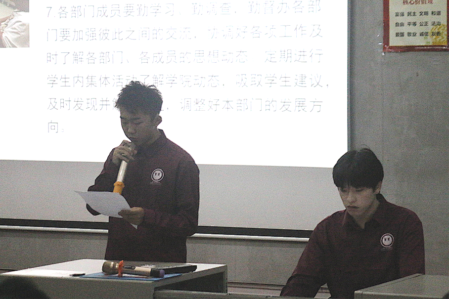 大会第四项议程:校团委秘书部解读2022-2023学年第一学期本部门工作计划。