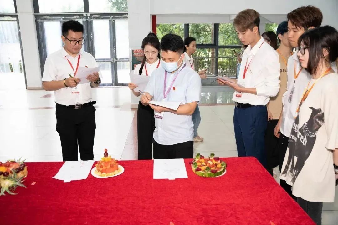 参赛选手在规定时间内完成作品后,由评委老师进行打分,评选出获奖选手。参与评选的老师有校团委书记唐良春、校团委组织部部长陈文斌、校团委老师陈万奇、林修竹、张岂源、王燕亭。